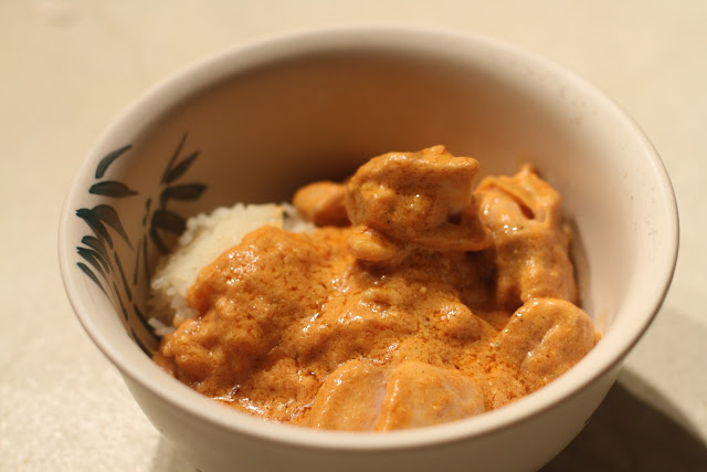 When my counterpart first started discussing this week's dinner plans with me, we agreed that chicken would be the most likely to yield success. It's cheap and it goes with just about everything. He recommended I start with an Indian dish known as Chicken Makhani, or Butter Chicken. I've never actually had this dish, which I think worked in my favor as I had no preconceived notions.