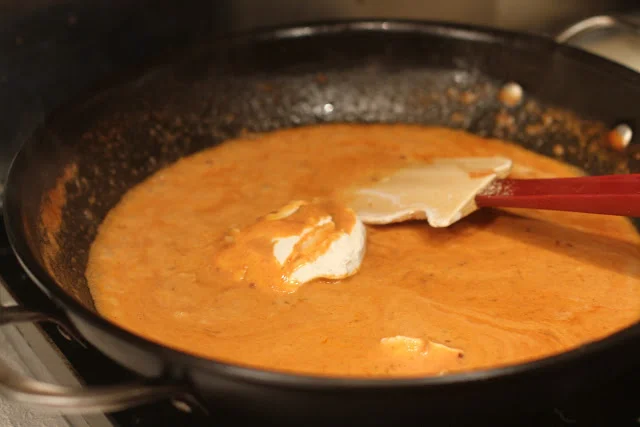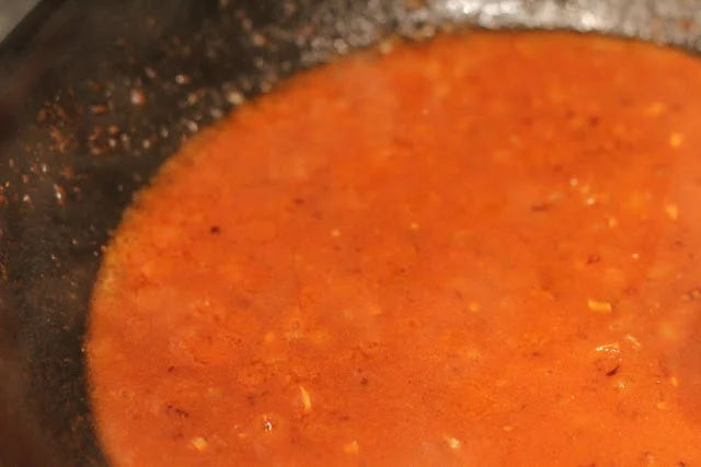 I wasn't sure about this last step but proceeded against my gut instinct. It changes the consistency of the sauce quite a bit. When my counterpart tried it, he said that the sauce is usually more liquid. If you take this step and are not pleased with the results, some milk or cream can be added to get the desired consistency.
