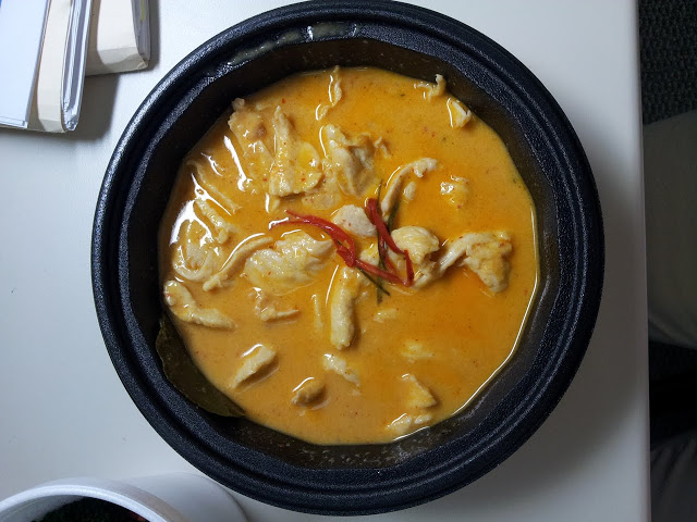 Today, I ordered the Panang Curry with chicken, sliced chicken breast in a peanut curry with what the menu called Thai vegetables. This actually turned out to be broccoli and carrots. They were cooked separately from the curry and were steamed to slightly tender, slightly crunchy perfection. Then, the kitchen staff placed them in a separate container to prevent them from wilting while I got my take out back to the office. The sauce was also very good and had a rich and slightly sweet flavor. The peanuts were crushed so fine that they blended into the sauce lending their flavor without providing any obstacles.