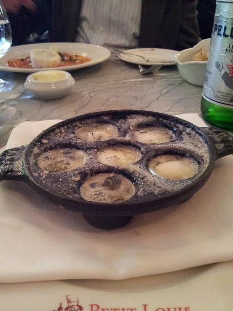 My escargot were served shelled and nestled in the traditional sectioned plate with each little mollusk nested in its own butter-filled compartment. The butter was rich and herby with just a hint of garlic, while the escargot themselves were tender and slightly pungent tasting of seawater when bitten.
