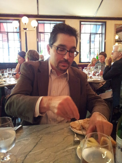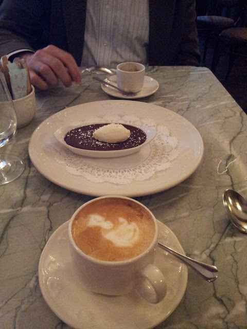 We shared a dessert that my counterpart has made at home with much success - pots du creme au chocolat. Served with a dollop of heavy, almost buttery cream, it was gratifying to experience how this dessert is prepared by an actual French chef. Dense and dark and rich, we were glad for the espresso we ordered along with it to help cleanse the palate (although when we were still awake after midnight, we were reminded that age alters what one is able to do in life, after-dinner coffee being among the simple things we really should no longer do).